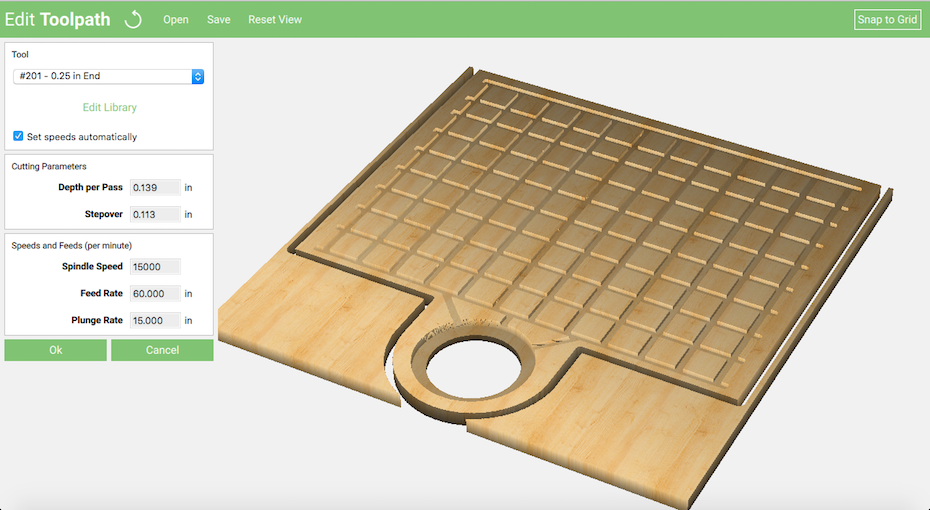OpenBuilds CAM — это бесплатная веб-программа, которую можно использовать для настройки маршрутизации с ЧПУ, лазерной, плазменной резкой. Программа имеет встроенную библиотеку деталей для доступа к уже существующим моделям и поддерживает файлы DXF, SVG, PNG, BMP, JPG, Gerber и Excellon (хотя, в частности, не STL).