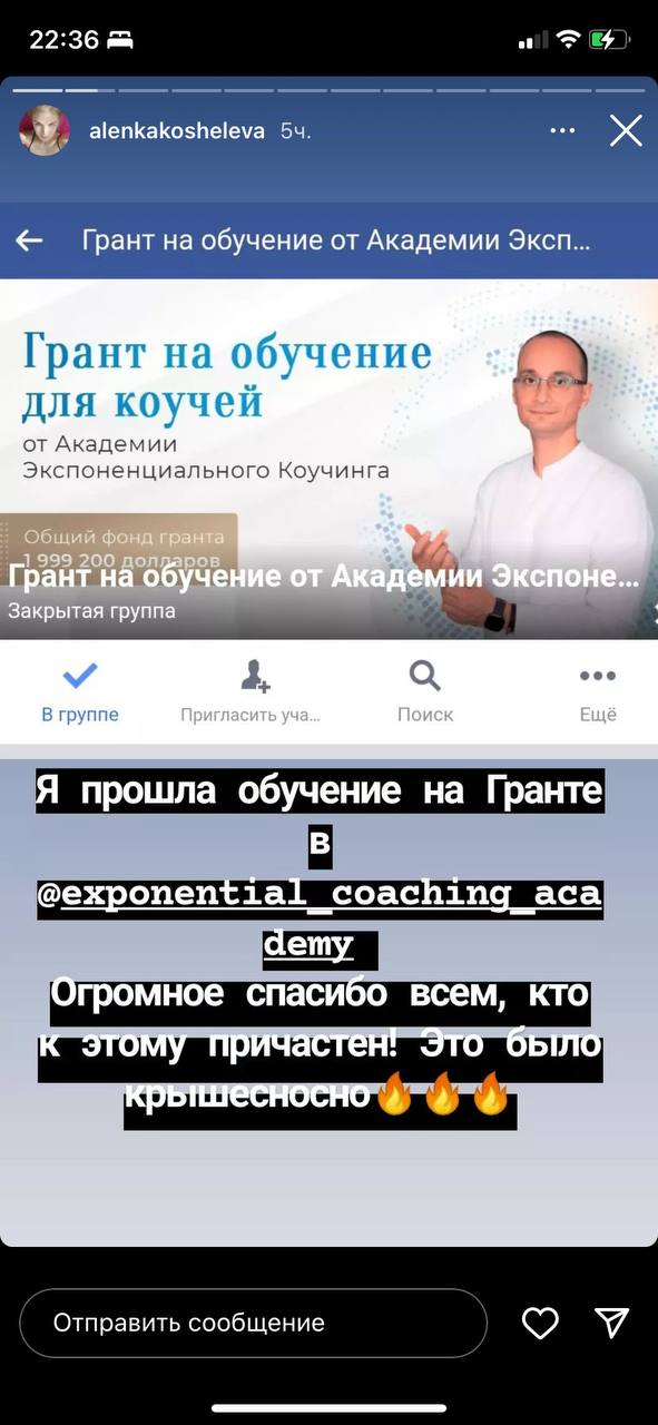 3х-дневной программе с полным живым погружением в элементы экспоненциального коучинга. Стоимость программы без гранта