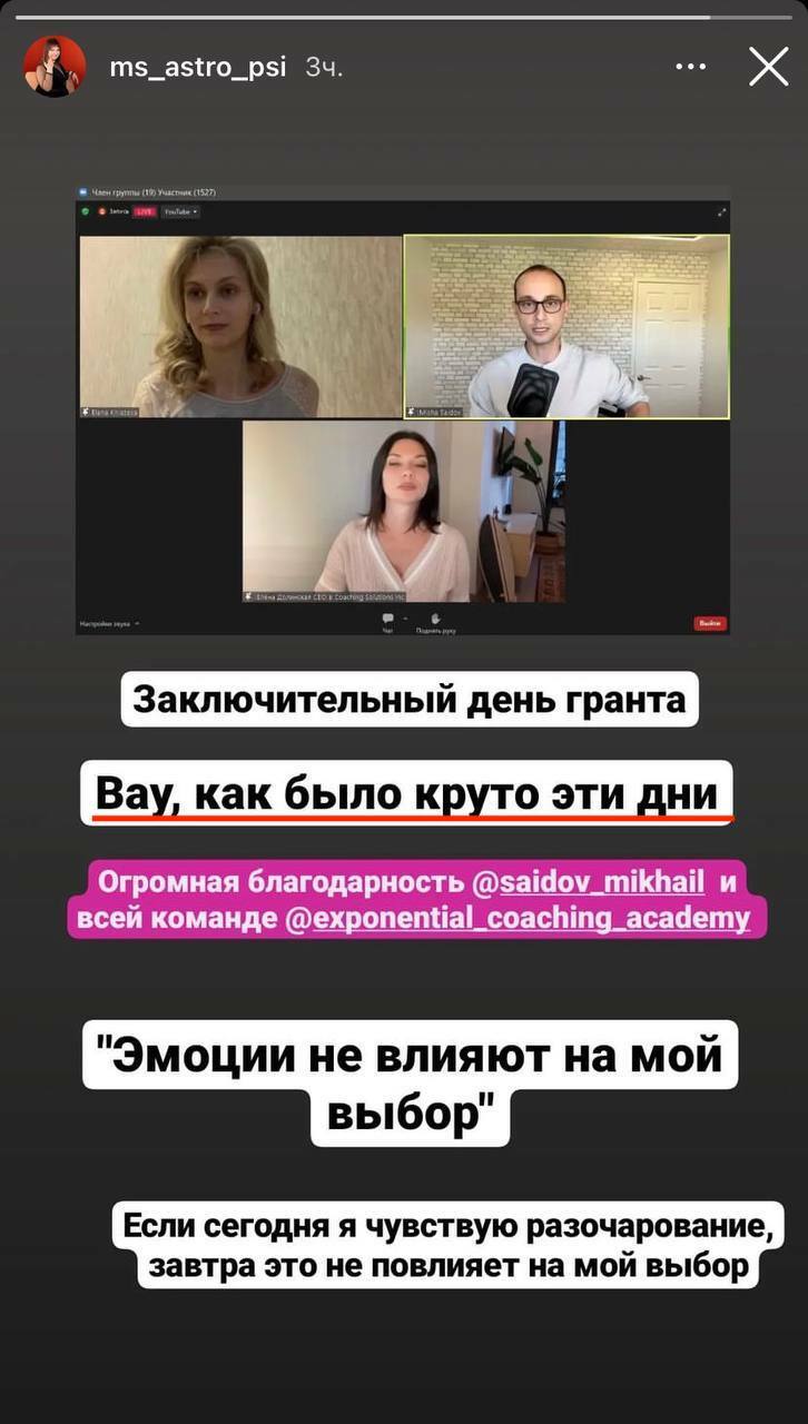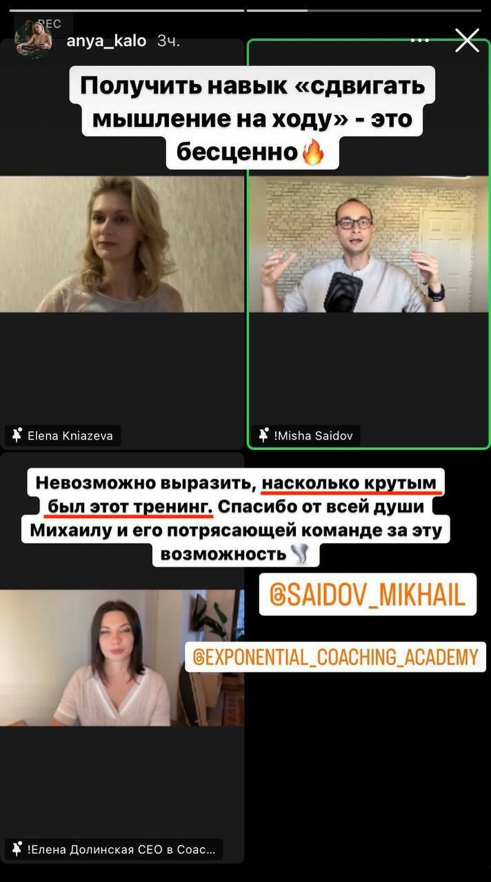 Обучение в Академии экспоненциального коучинга Михаила Саидова — отзыв. Видео-дневник 21.07.2022