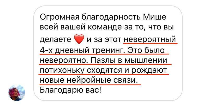 P.S. В сентябре хочу повторить интенсив по технологии моделирования реальности. Только в этот раз он будет не один, а три дня (подготовка — основной день — вип).