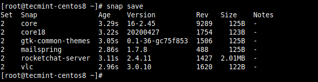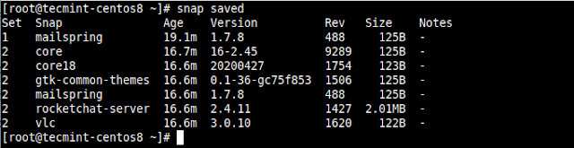 Вы можете просмотреть содержимое каталога snap, используя команду ls, как показано ниже.