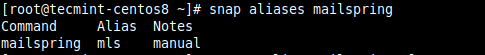 Чтобы получить список псевдонимов для snap, например mailspring, выполните приведенную ниже команду. С этого момента вы можете использовать псевдоним для запуска snap.
