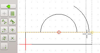 Теперь необходимо будет поочередно ввести начальный и конечный угол (соответственно 0 и 180 градусов). После создания первой дуги QCAD предложит указать центр новой дуги.