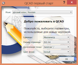 Настало время запускать QCAD. При первом запуске программа предложит выбрать язык интерфейса, и настройки чертежа. Я предпочитаю белый фон.