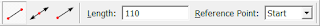Теперь перейдем к созданию горизонтального отрезка. Два раза нажмем Esc и выберем на панели инструментов создание горизонтальной линии. Обратите внимание на появившуюся в верхней части главного окна панель опций. В ней нам нужно указать длину отрезка 110, а в качестве точки привязки выберем начало.