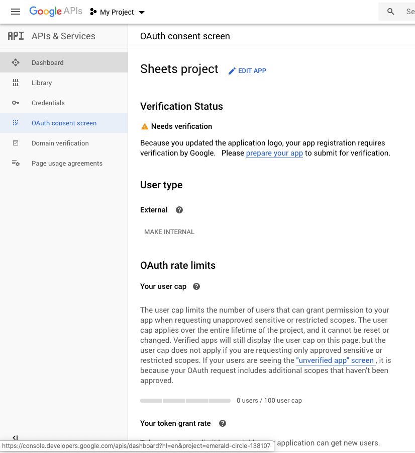 Для подготовки вашего проекта для проверки, вам нужно пойти в раздел «окно запроса доступа OAuth» в Google Console.