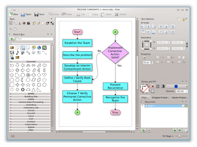 В приложении имеется более 1000 фигур, объектов и символов для диаграмм, и вы можете добавить в него больше фигур из репозитория Dia. Dia имеет дизайн пользовательского интерфейса с вкладками, так что вы можете редактировать диаграммы на нескольких вкладках и позволяет добавлять альтернативные слои к диаграммам. Кроме того, за исключением файлов Visio VSD, программное обеспечение поддерживает наиболее известные форматы файлов диаграмм.