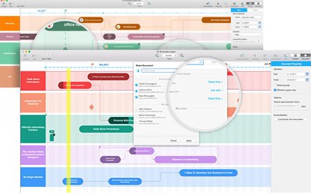 В этой программе вы рассчитаете перспективы развития проекта, если занимаетесь расчётами работ по экономике, а может быть, оно вам пригодится в собственном небольшом бизнесе. Делаете наглядную сетку, когда и что должно произойти, добавляете иконки и стрелки, выстраивая причинно-следственные связи. Таким образом, получается история, где вы планируете весь проект, а потом стараетесь следовать выбранной траектории развития. В Apple Store программу можно скачать для ознакомления бесплатно, но, если нужны дополнительные возможности, придётся заплатить.
