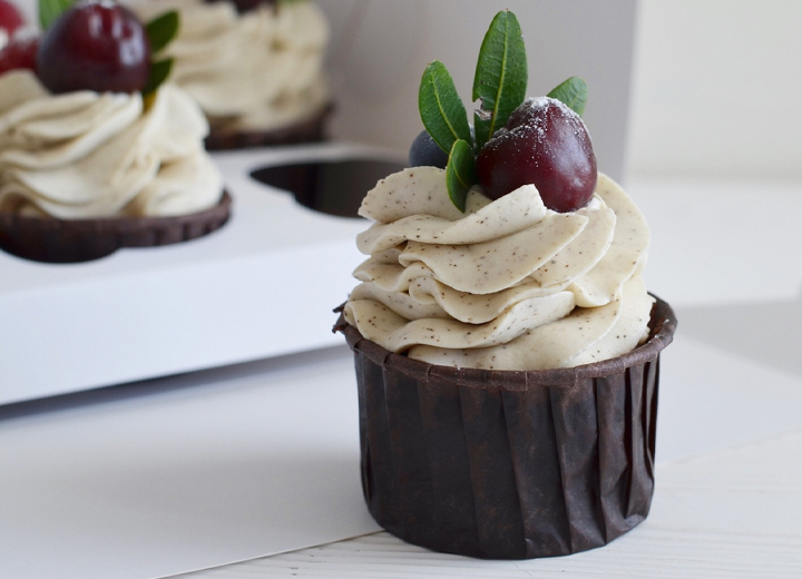 Этот крем отлично держит форму, идеально сочетается с ванильными, шоколадными и кофейными капкейками.