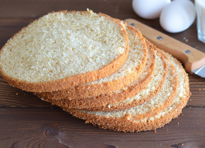 Такой бисквит подойдёт для небольших и многоярусных тортов. Он идеально режется и отлично сочетается со многими начинками