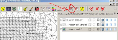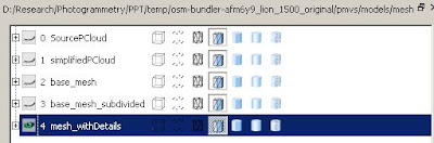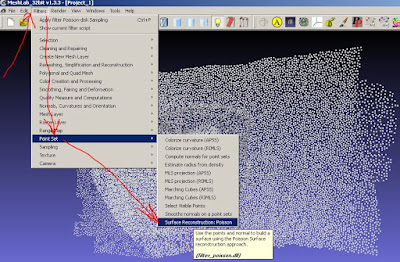 Я наблюдал за трехмерной восстановлением, удерживая SIFT-GPU + Bundler + PMVS, может иметь плотное облако 3D-точка, но как восстановить реальную трехмерную модель с трехмерным облаком точка, все еще не изучалось. Интернет онлайн-поиска находит, что Meshlab может восстановить трехмерную модель в соответствии с облаком точки, который записывается здесь. Поскольку все другие, я буду использовать VisualSFM, чтобы построить трехмерное точка облака с VisureSFM, а затем использовать Meshlab для установления трехмерной модели.