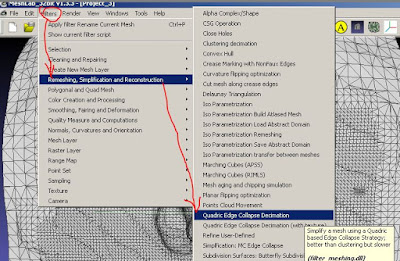 Дело в том, что созданная сетка сейчас очень неравномерная и «грязноватая».. Для оптимизации пропустим нашу геометрию через фильтр » Quadric Edge Collapse Decimation «:
