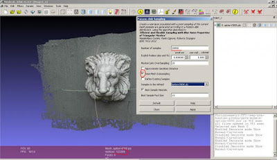 Что бы произвести какие то изменения с объектом в MeshLab его нужно «прогнать» через так называемый «фильтр». Этих фильтров огромное количество на все случаи жизни 🙂 .. В данном случае нам нужен фильтр «Poisson-disk Sampling» :