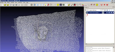 Согласно вышеуказанному операции, трехмерное точечное облако было реконструировано в соответствии с изображением. Следующим шагом является использование MESHLAB для создания трехмерного облака точки в 3D-модели.
