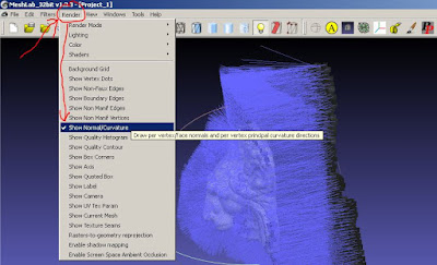 1) Проверяем, что точки ориентированы правильно. Для этого идем в меню render и включаем режим отображения нормалей — «show normalcurvature»:
