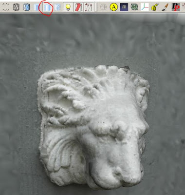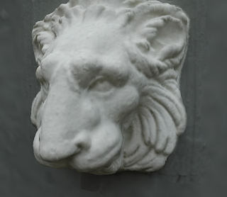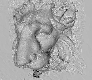 Видно, что маленькие символы в скульптуре также расплывчаты, и это лучше, чем оригинальная карта. Реконструкция лучше. Однако глава персонажа имеет призрак, который должен быть вызван входящей облачной реконструкции или шумом.