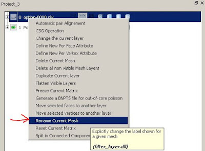 Что бы переименовать слой — достаточно нажать правой кнопкой мышки по нему и выбрать «Rename Current Mesh»: