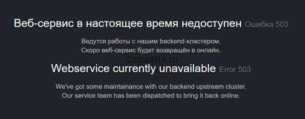 UPDATE 18:30 — сервера поднялись, но к API доступа нет. Вместо привычного содержимого вывесили заглушку о тех.работах, а приложения по прежнему прибывают в автономном режиме:
