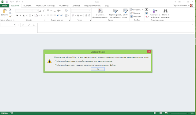 Итак, эта хаутошка будет вам полезна, если вы видите диалоговое окно со следующим текстом: «Приложению Microsoft Excel не удается открыть или сохранить документы из-за нехватки памяти или места на диске. Чтобы освободить память, закройте ненужные книги или программы. Чтобы освободить место на диске, удалите с этого диска ненужные файлы».