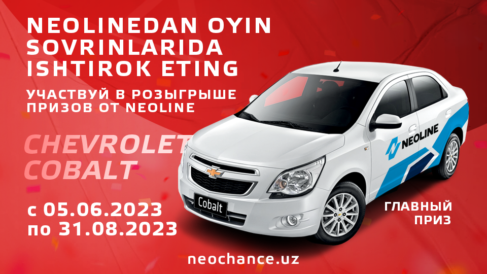 С 5 июня по 31 августа мы проводим большой розыгрыш призов, а в конце будет определен обладатель главного приза – нового автомобиля Chevrolet Cobalt!