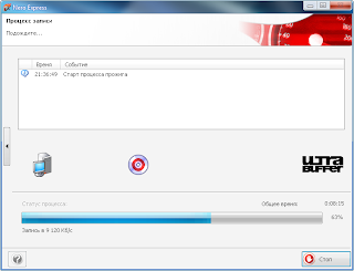 Нажмите кнопку (Сохранить). Файл образа будет сохранен, после чего начнется процесс создания образа диска, который выглядит так же, как и процесс записи диска.