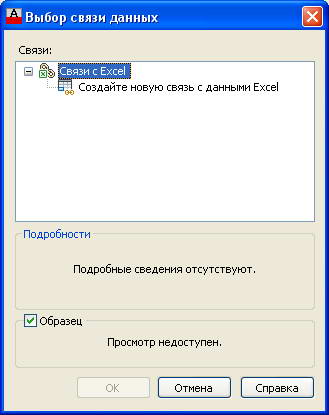1. Запускаем в AutoCAD команду Таблица . В диалоговом окне выбираем пункт На основе связи с данными . В выпадающем списке еще нет никаких связей, мы создадим новую, выбрав соответствующий пункт меню или нажав кнопку рядом
