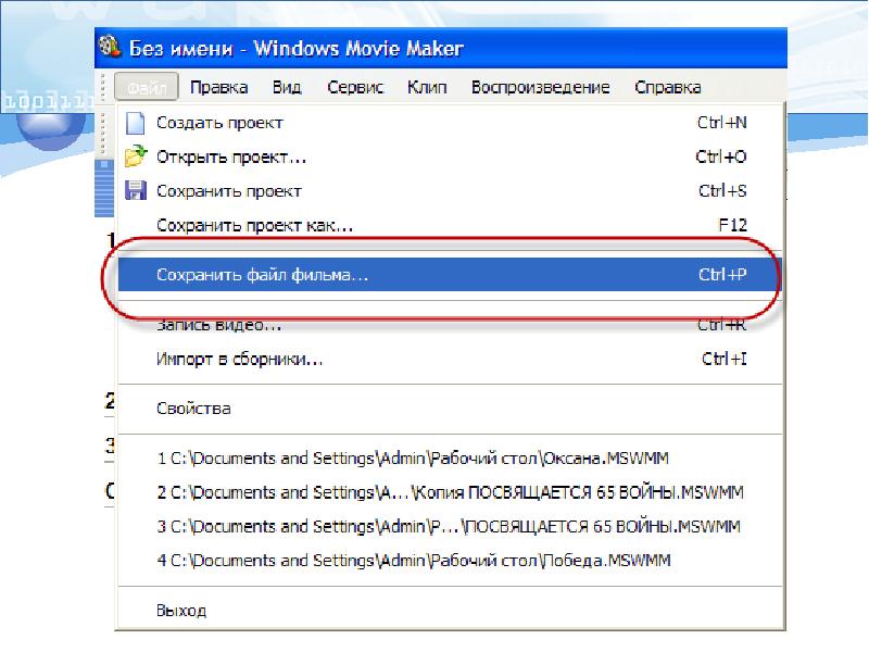 Презентация, доклад Интерфейс программы Windows Movie Maker
