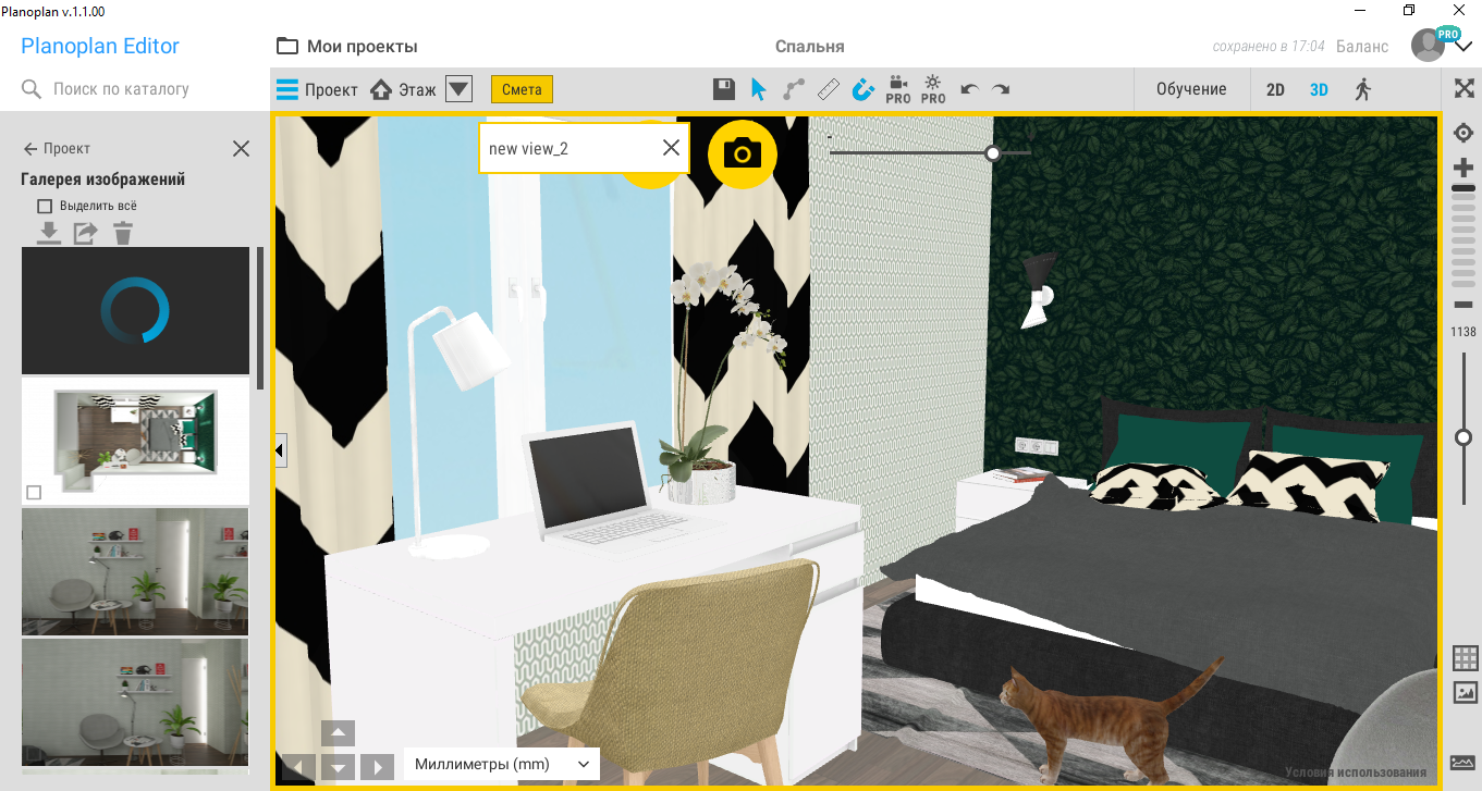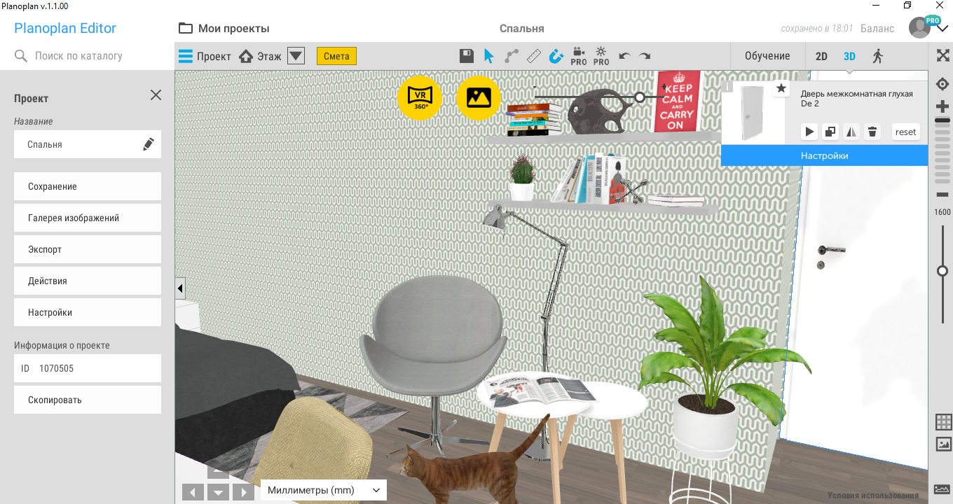 - Программой можно пользоваться в браузере или скачать на компьютер.Изначально я не планировала ничего устанавливать, т.к. для меня это всегда стресс. Работала в Chrome. Через какое-то время стала замечать некоторые глюки: например, часть мебели не отображалась в 3D-режиме + иногда во время загрузки всё подвисало. Возможно, это из-за скачущей скорости моего интернета, не знаю, но я решила не раздражаться лишний раз, а всё-таки установить Планоплан на компьютер. Всё это заняло минуты 2. При этом то, что я уже успела сделать в браузерной версии никуда не пропало, а синхронизировалось. Ещё один плюс: в процессе работы всё «летает» и грузится во много раз быстрее.