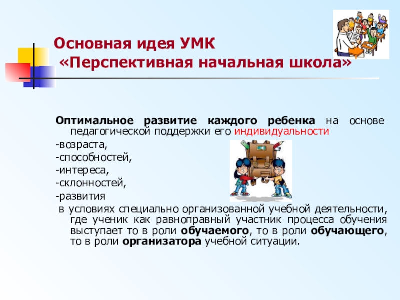 Слайд 12Основная идея УМК «Перспективная начальная школа»