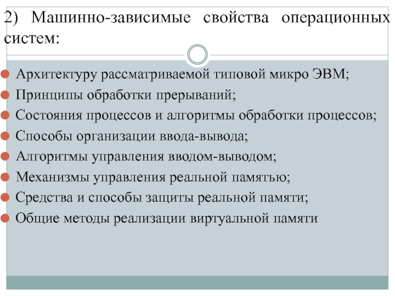 Слайд 62) Машинно-зависимые свойства операционных систем: