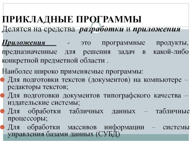 Слайд 13ПРИКЛАДНЫЕ ПРОГРАММЫ
