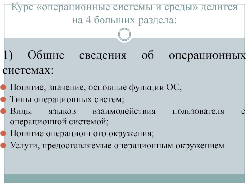 Слайд 5Курс «операционные системы и среды» делится на 4 больших раздела: