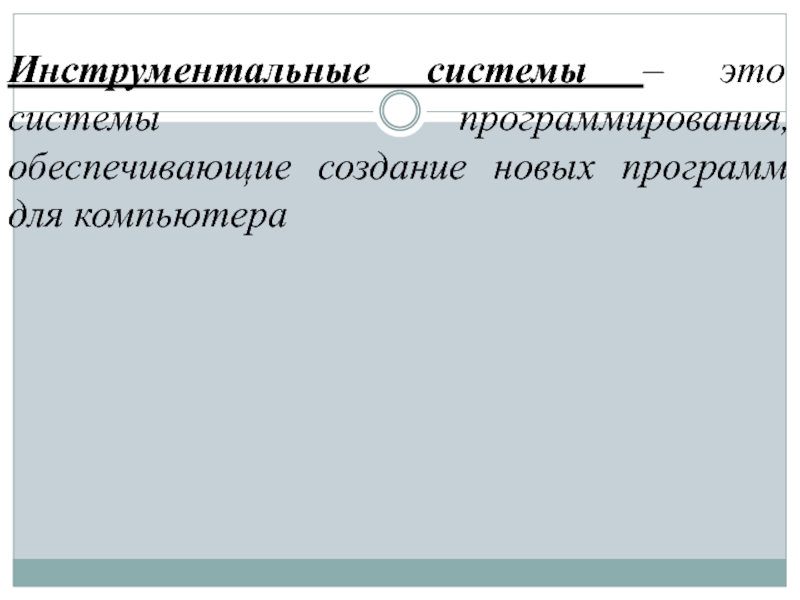 Слайд 11Инструментальные системы – это системы программирования, обеспечивающие создание новых программ для