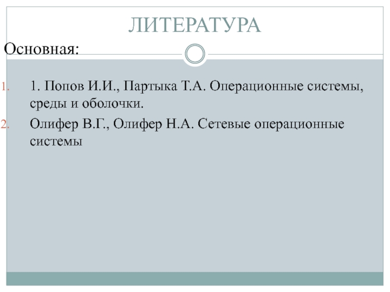 1. Попов И.И., Партыка Т.А. Операционные системы, среды и оболочки.