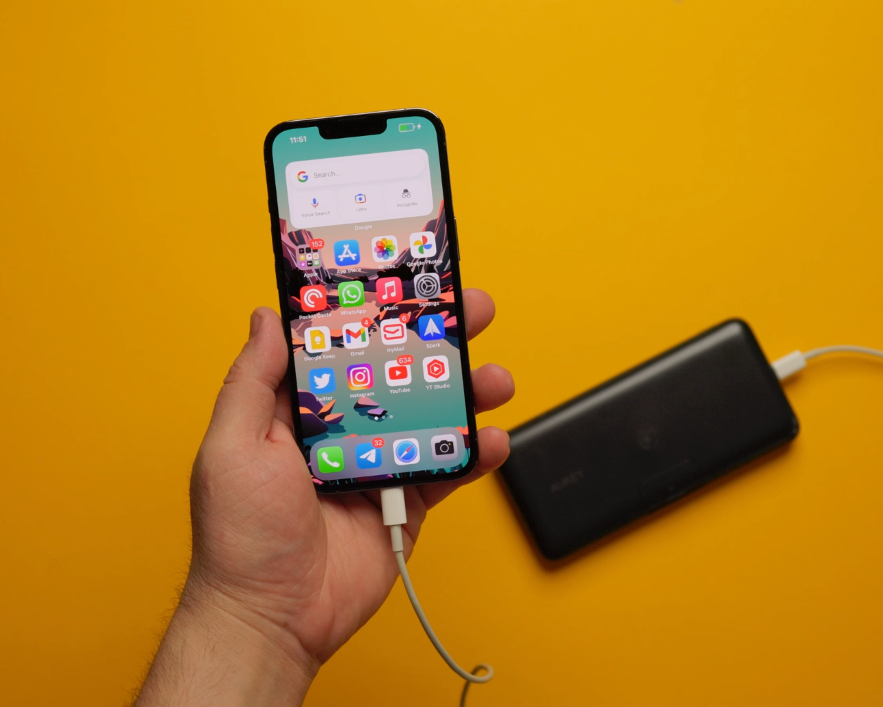 Это занимает примерно час, и мне хватает смартфона на весь день. При этом объем батарейки за несколько месяцев у меня не изменился, и все еще составляет 100%. С беспроводной зарядкой дела еще хуже: с фирменной 15 Вт магнитной зарядкой MagSafe телефон заряжается больше двух часов. Поэтому от беспроводной зарядки с 13 Pro Max я отказался сразу, это слишком долго и неудобно.