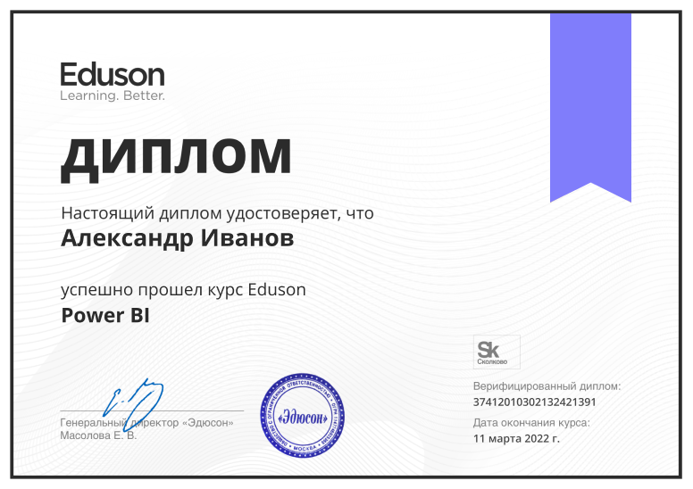 В конце курса вы решите реальную бизнес-задачу — подготовите отчет на основе данных рекламного агентства. Примените все полученные навыки работы в Power BI и получите официальный диплом, который усилит ваше резюме.