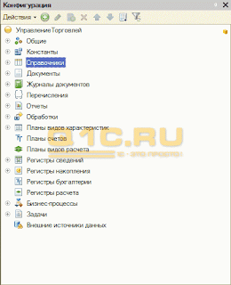 Справочники — это специализированный объект древа метаданных, который служит для хранения статичной информации справочного характера. Например, в типовых конфигурациях можно увидеть следующие виды: Контрагенты, Номенклатура, Сотрудники, Основные средства и т.д.