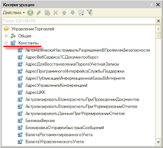 Константы — это объект метаданных, который хранит в себе редко изменяющуюся информацию. Как правило, в константах хранят информацию о настройках системы. Например, валюта регламентированного учета, заголовок системы, значения для функциональных опций и т.д.