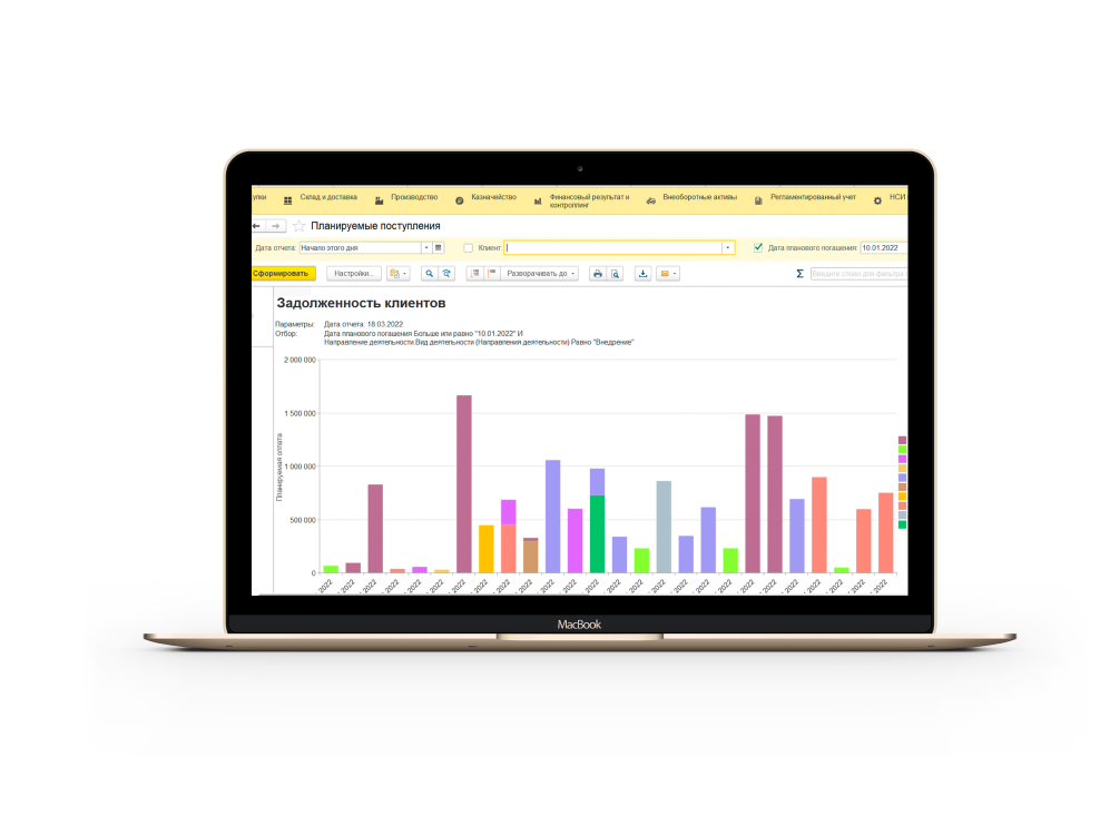 - Управление: бюджет, планирование, учет, управление ассортиментом, маркетинговые инструменты, МСФО, целевые показатели, управление, финансовый анализ – в программе можно контролировать любые процессы, операции и потоки, оперативно управлять производством и торговлей, в том числе и у дочерних компаний.