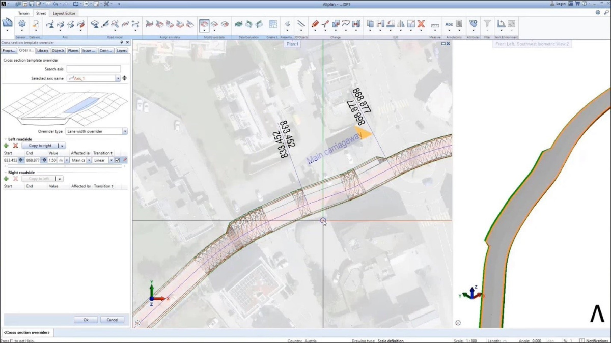 Также появился новый параметрический инструмент, позволяющий регулировать положение осей дороги и их пересчитывать, в случае необходимости, в режиме реального времени.