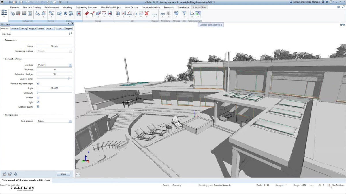 К слову об улучшении визуализации, в версии Allplan 2022 переработана графика, так что пользователи смогут использовать возможности современных видеокарт ещё лучше. Так, например, технология Vulkan с движком NVIDIA Optix позволяют удалять шум изображения при рендеринге. Кроме того, в программе появилась возможности добавления как неподвижных, так и анимированных эффектов «тумана», «свечения» (эффект «размытости света»), «бликов»; рендеринга моделей белого цвета; добавления света и теней.