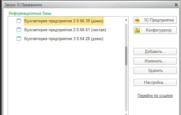 Если 1с ранее уже была установлена, то откроется список уже имеющихся баз. Нажмите кнопку «Добавить»