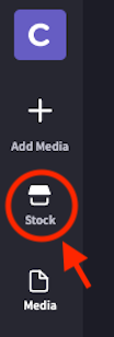 После того, как вы настроили проект и добавили свое видео, можно всего за несколько кликов добавить в него отличны звук. Все, что вам нужно сделать, это нажать кнопку Сток в меню слева. Как только библиотека откроется, выберите АУДИО :