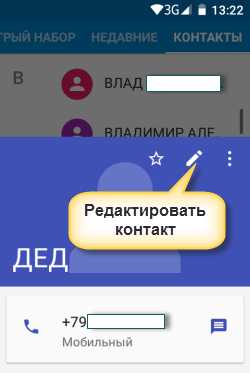 1. Для добавления мелодии на контакт открываете его для редактирования.