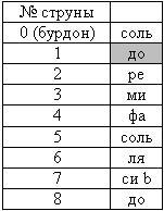 3. Теперь настраиваем струны со второй по восьмую в соответствии со значениями столбца (для 9-ти струнных гуслей).