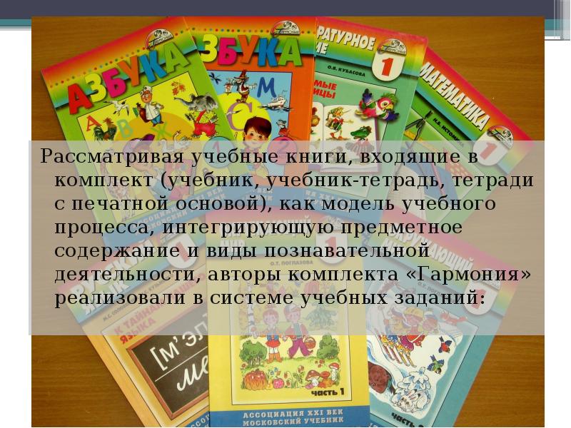 Одной из главных задач авторов комплекта «Гармония» явилась разработка способов организации учебной деятельности младших школьников, обеспечивающих комфортные условия для развития ребенка в процессе усвоения знаний, умений и навыков, соответствующих учебным программам и требованиям начального образовательного стандарта.