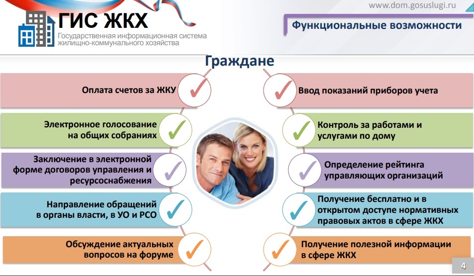 Разработчики системы — Минкомсвязи России и Минстрой России — разъясняют, что это такое и для чего нужен ГИС ЖКХ гражданам: ее полномасштабный запуск облегчил взаимодействие между собственниками жилья и поставщиками услуг, так как она обладает большим набором возможностей, упрощающих общение граждан с органами власти, управляющими организациями и поставщиками ресурсов. Действующее приложение ГИС ЖКХ позволяет всем собственникам квартир в многоквартирных домах: