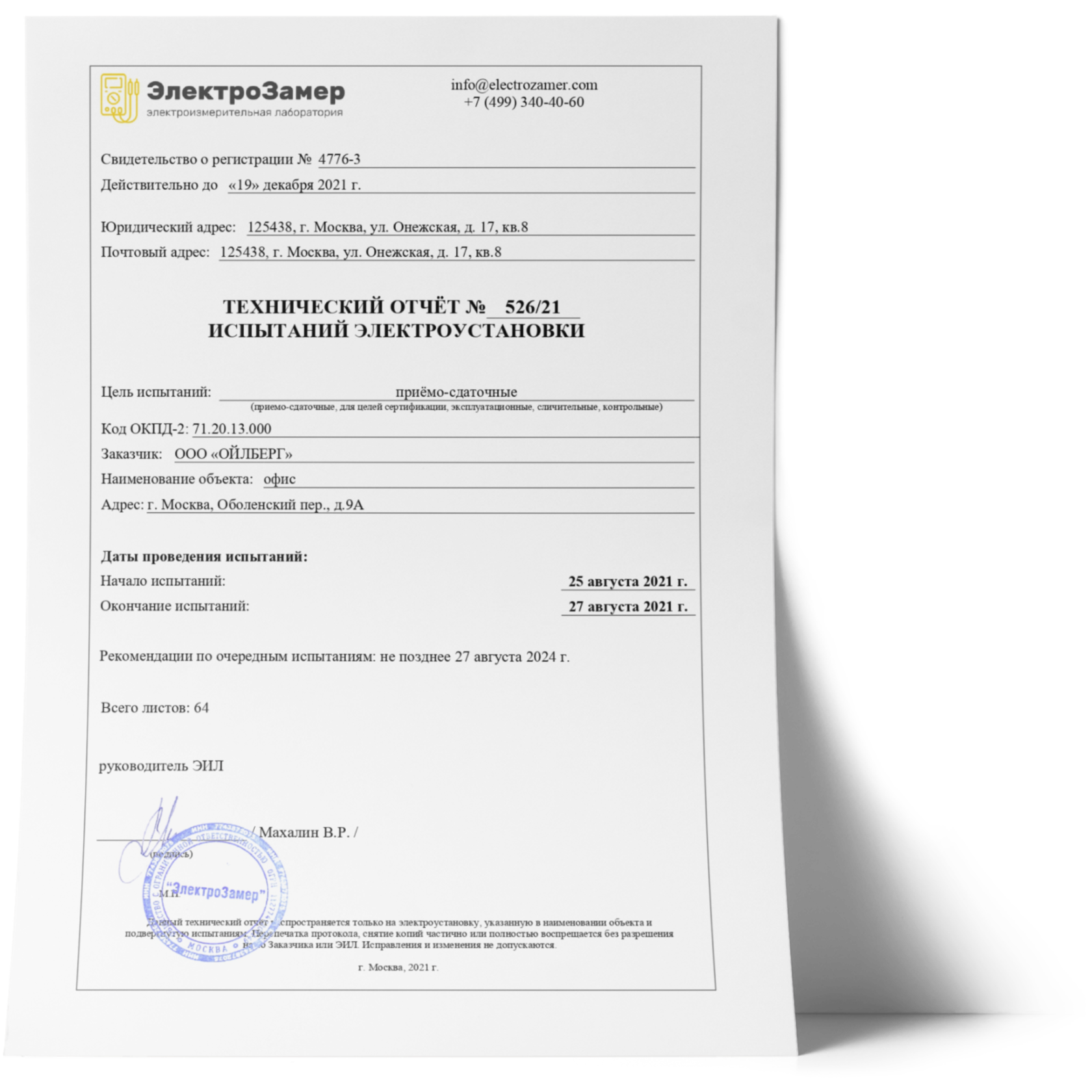 Технический отчёт должен решать задачу заказчика, с которой тот обратился в электролабораторию, а не создавать новых проблем, поэтому важно, чтобы он был правильно оформлен и включал все необходимые протоколы измерений и испытаний!