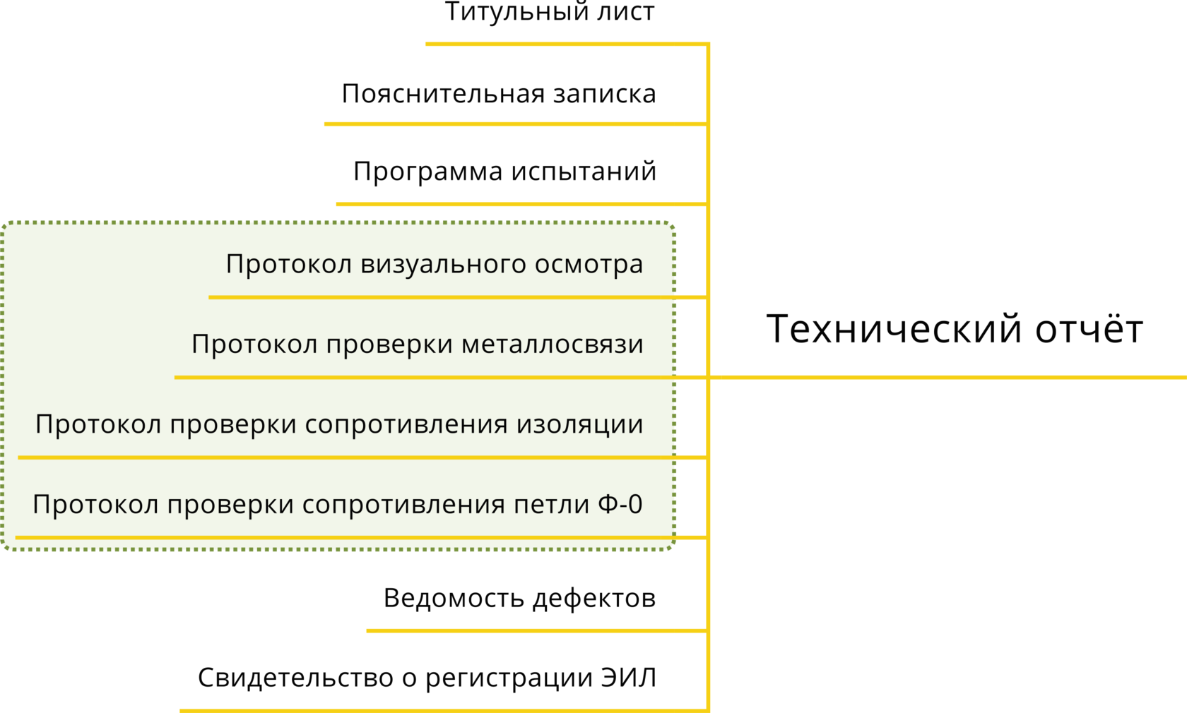 Форма, состав и структура технического отчета об электроизмерительных работах