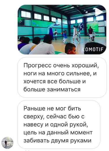 Во время обучения ты будешь находится в закрытом чате для участников . Ты сможешь делиться своим опытом, задавать вопросы и получать советы от таких же игроков, как и ты. Это позволит тебе быстрее увеличить высоту прыжка и научиться забивать любые данки.